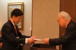 澤田善郎 理事長(当時)より贈呈される秦 健一郎先生